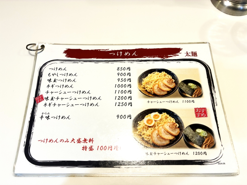 他の方の提供内容に聞き耳を立てていると、つけめんを注文されている方が多くこちの方が人気のようです。